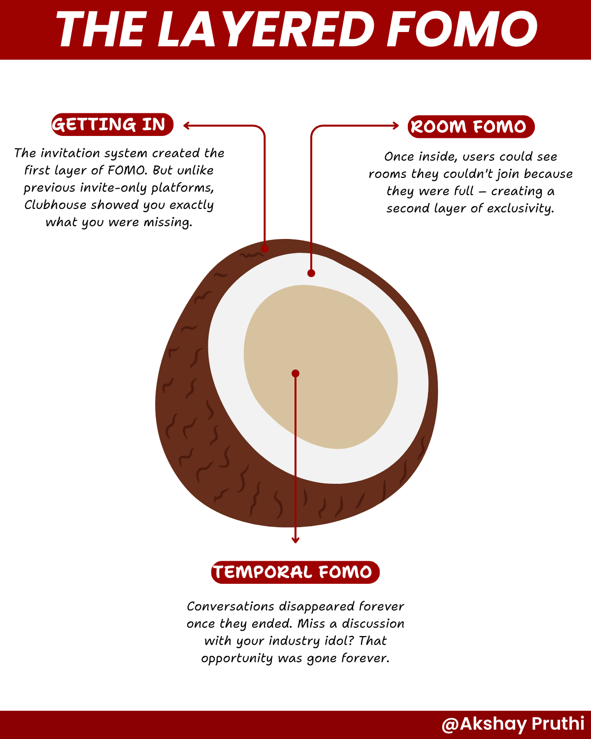 This wasn't just clever growth hacking – it was a masterclass in psychological triggers. Clubhouse had tapped into what sociologists call "scarcity-induced arousal," where the perception of limited access heightens the perceived value of something.